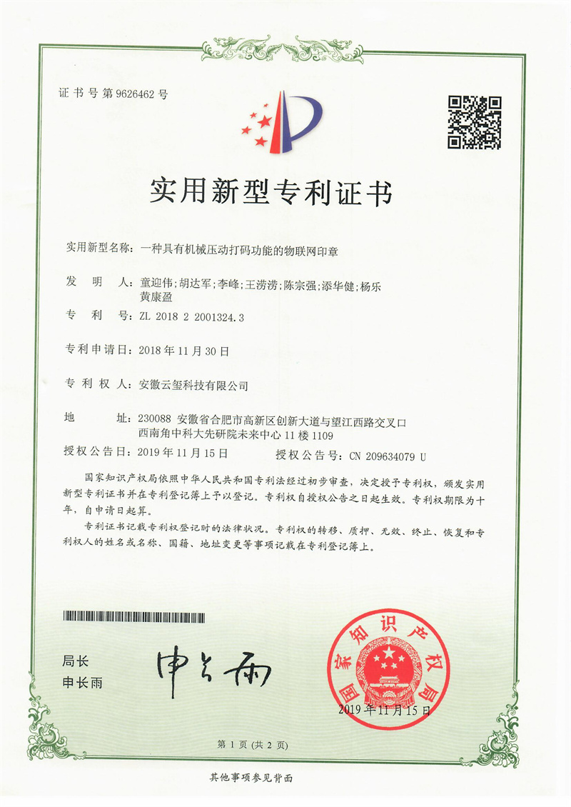 公司原創發明一體式智能印章技術,引領國內外新一代智能印簽創新變革。獲中日韓多項發明專利,徹底解決了實體印章和電子印簽管控的社會難題,獲國務院國資委全國央企熠星二等獎。公司聯合國家信息安全產品認證中心、公安部三所、信通院、中國印章協會等,主導起草了行業首個智能印章安全認證標準和智能印章產品標準,引領了智能印章行業發展。